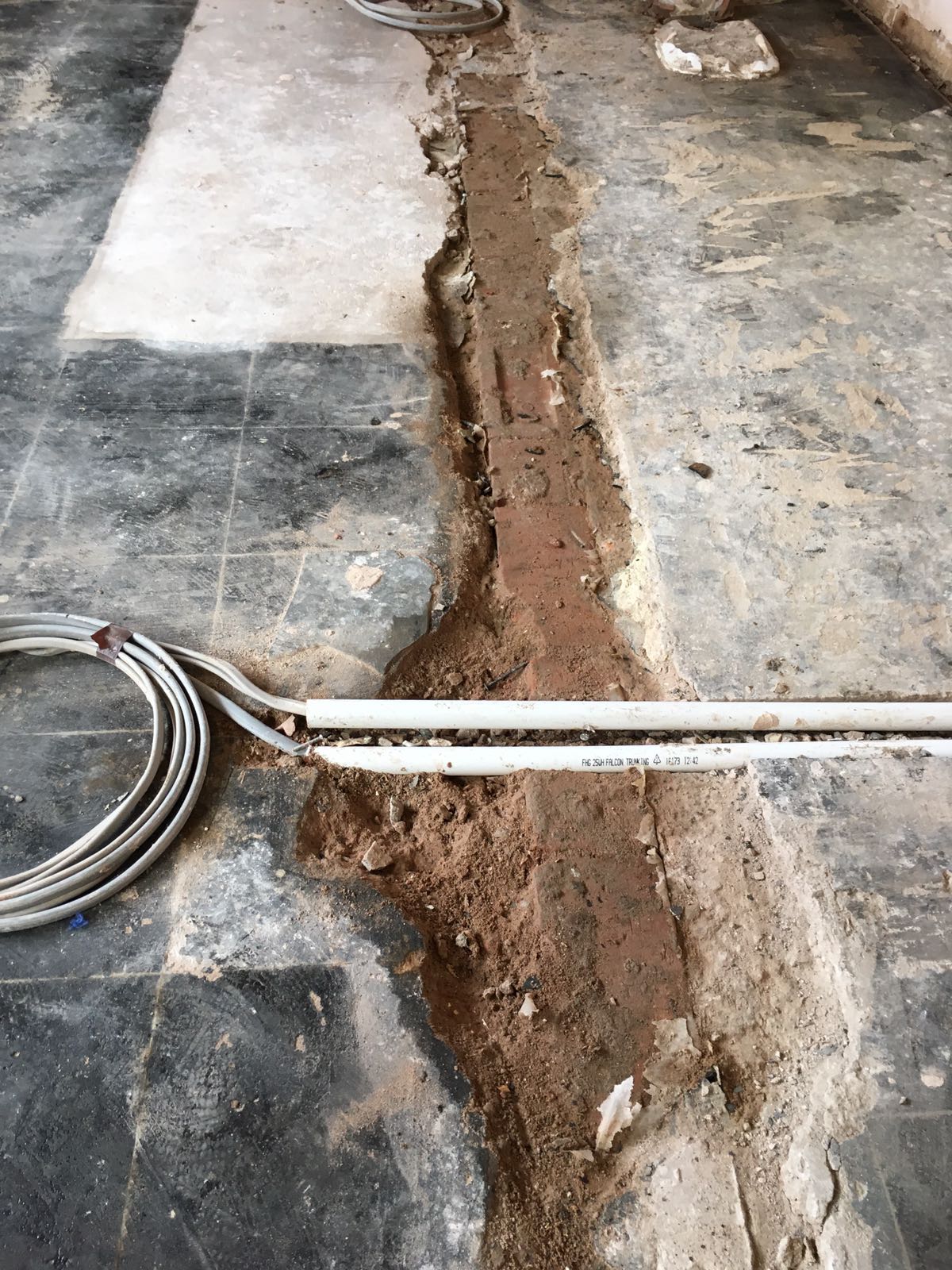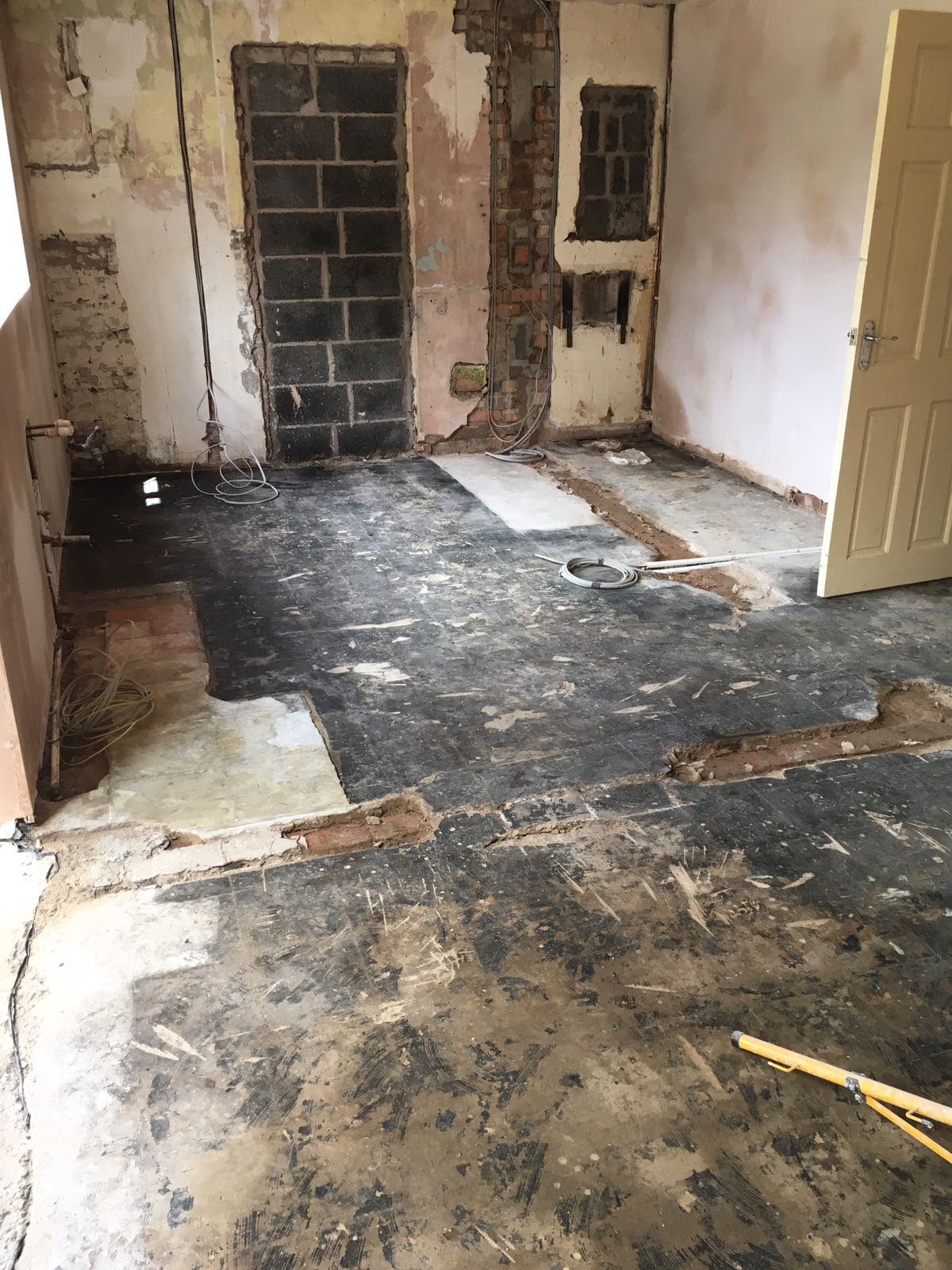 The Gainsborough team walked into an empty shell due to a wall being knocked down, and the area was a bit like a building site with asbestos and uneven flooring from the ground being dug up for wiring, etc. There was also damp present so the team had to apply a damp proof membrane to the floor to prevent the flooring from being affected by the damp. The team organised the asbestos to be removed professionally and levelled the floor through screeding.